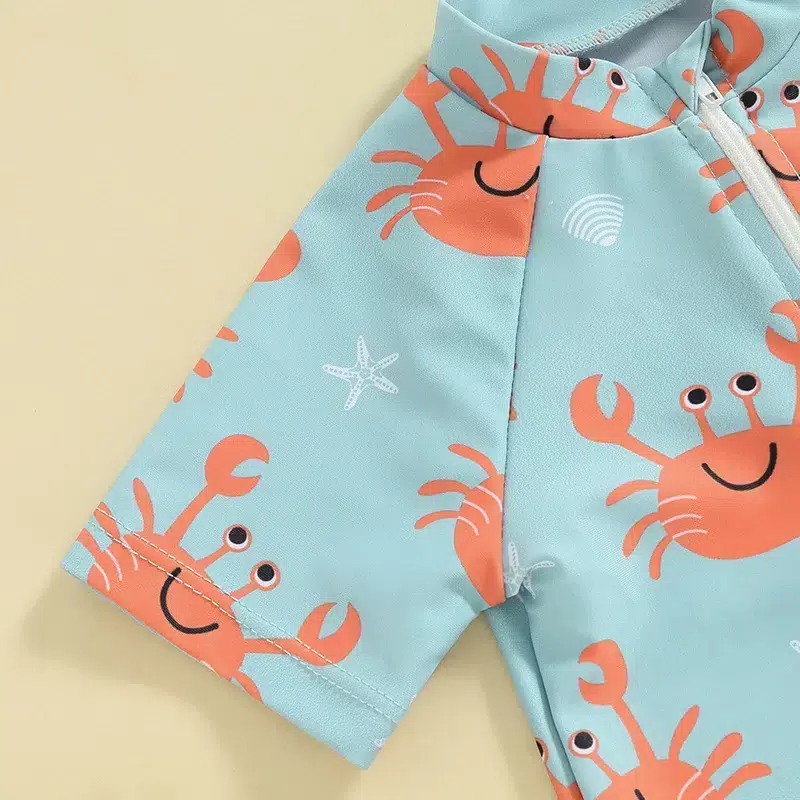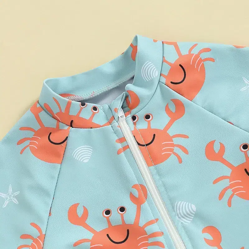 Pour accompagner les mouvements de votre enfant dans l’eau, le maillot de bain bébé imprimé crabe est confectionné dans un tissu doux et léger, spécialement sélectionné pour être agréable sur la peau délicate des tout-petits.