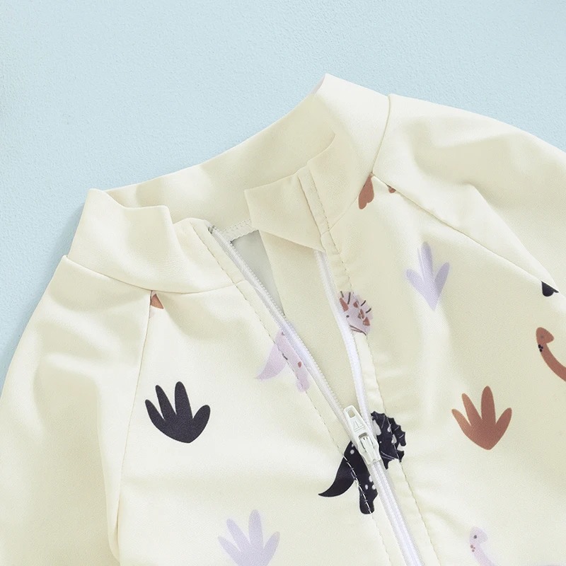 Confectionnée dans un tissu doux et léger, la combinaison permet une liberté de mouvement sans compromis sur la sécurité. Les imprimés ludiques de dinosaures, en noir, marron, violet et beige, éveillent l’imagination des plus jeunes et leur donnent envie de passer des heures à jouer.