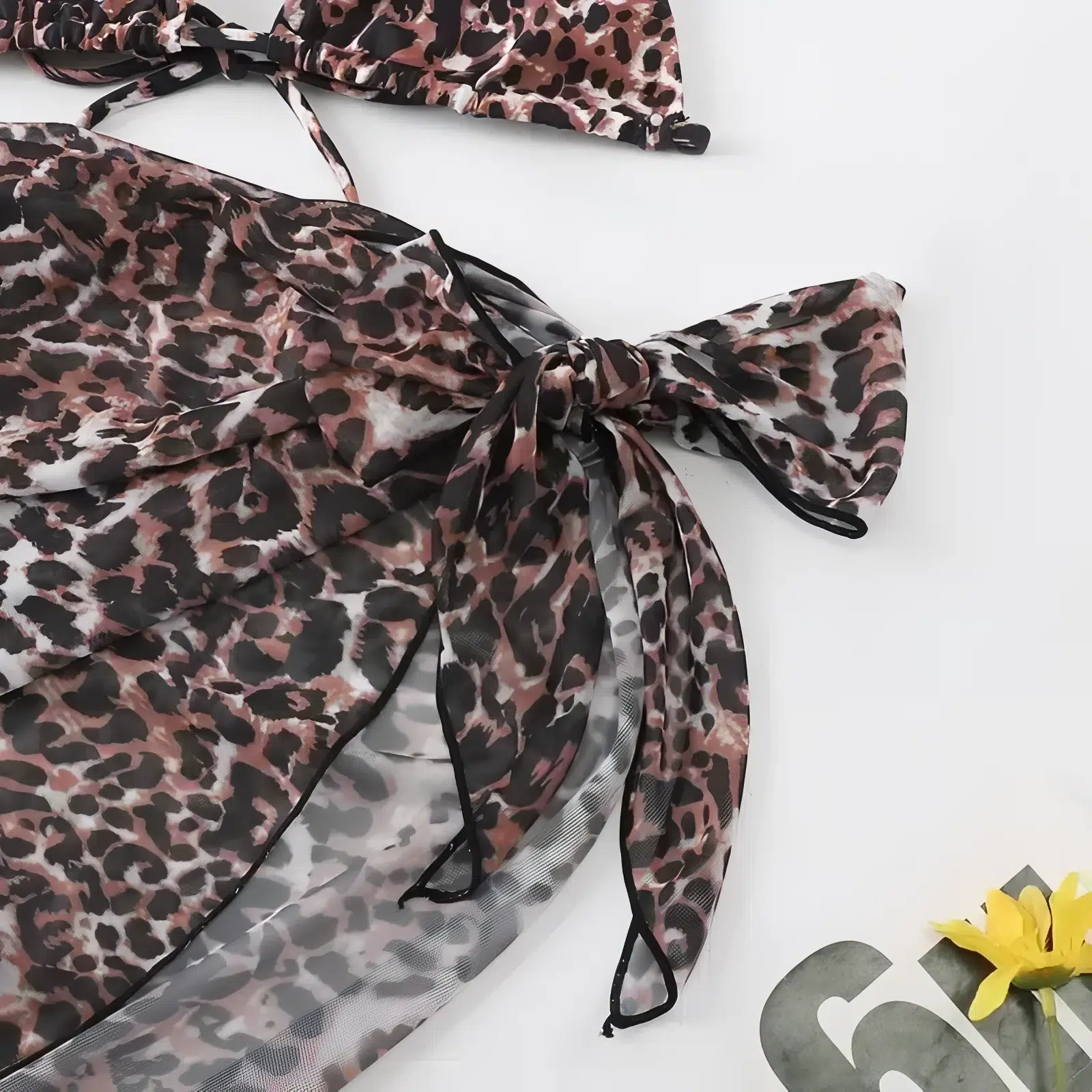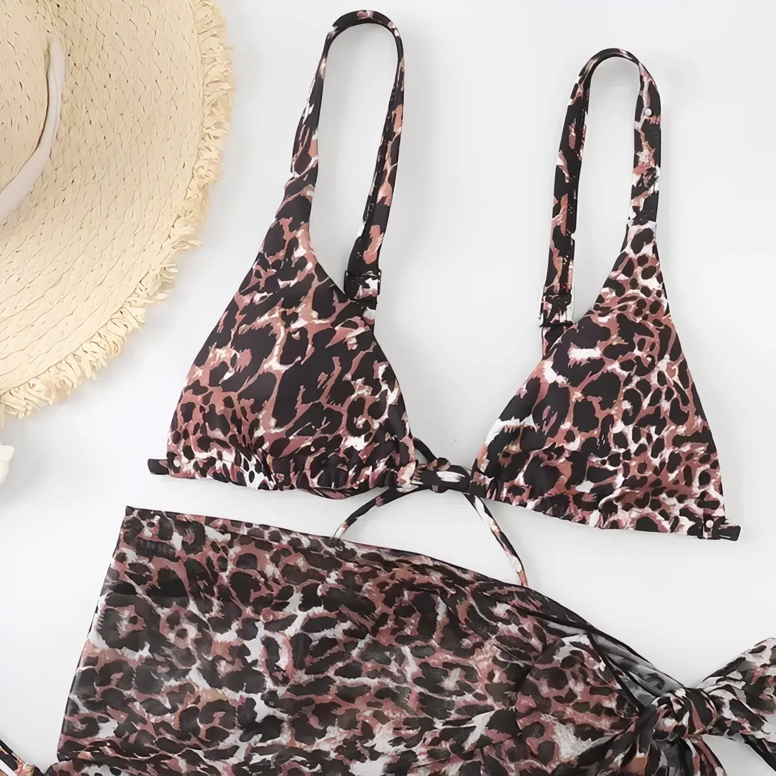 Le maillot de bain imprimé léopard trois pièces est conçu pour s’adapter à toutes les morphologies. Le haut de bikini triangle, avec ses bretelles réglables, permet un ajustement personnalisé qui assure une tenue en toute sécurité.